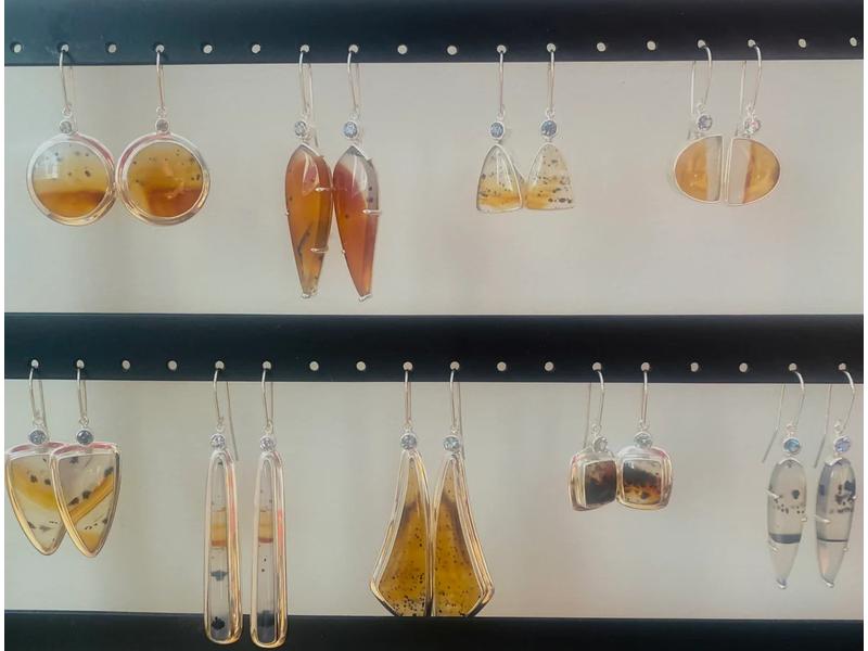 Montana Sapphire with Montana Agate Sterling Silver Earrings